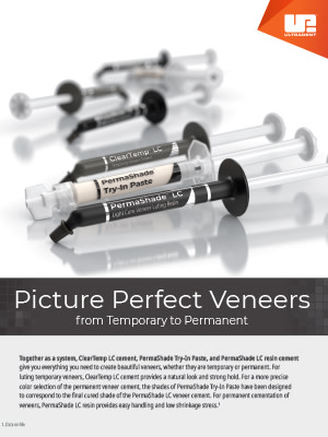 Designed to give added precision and convenience, PermaShade LC luting resin's unique syringe gives both ergonomic comfort and is perfect for use with smaller veneers.