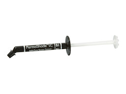 PermaShade LC veneer cement is a light-cured luting resin used exclusively for cementing translucent prosthetics where light can transmit and shade matching is important. Its ergonomic contra-angle syringe makes cementation of delicate prosthetics more convenient than other methods. With enduring color stability and low shrinkage, PermaShade LC veneer cement is ideal for creating a long-lasting, esthetic smile.